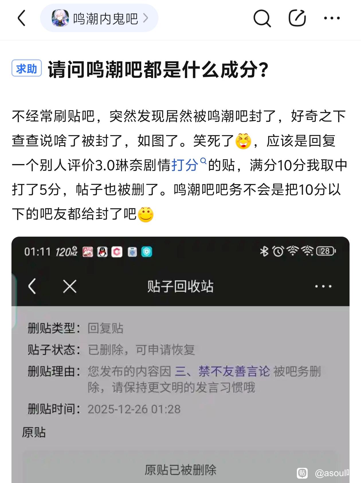 txslm88 你看我是人不并非,鸣潮吧里面xz成分偏高,我上半年发了个贴提了点剧情意见直接给我封了一个月。