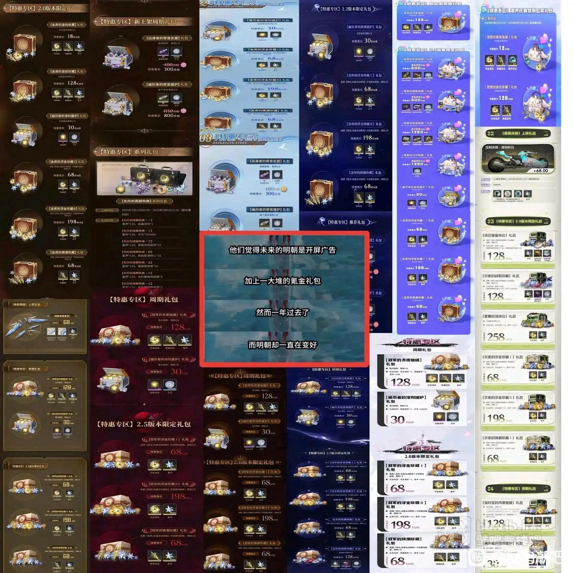 肯定原神啊,原神一个版本那么多礼包,已经开始营收压力了