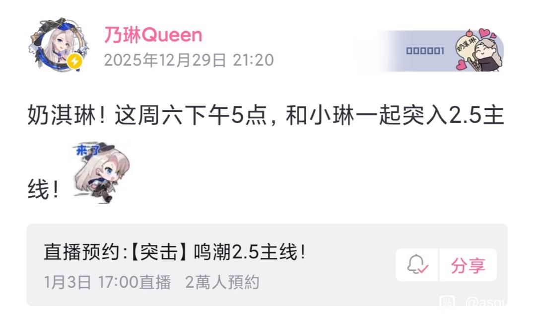 起始页asoul吧 颤抖吧a87,等琳姐突破六万同接把你们全宰了tid:103574729812026/01/01 22:15:578982 7 1楼主:喜欢轻音最后回复:丿ghost灬2026/01/01 22:49:551楼pid:1530469533652026/01/01 22:15:57喜欢轻音 楼主 6级 两万预约了2楼pid:1530469646582026/01/01 22:19:37明月焕____若智如初见💫小吧13级 牛的,高热度剧情加元旦假,说不定真能冲一下3楼1条pid:1530469686542026/01/01 22:20:53南风砂糖橘超乎想象的赶稿懒狗6级 众所周知只有130个kg,而a87有15.8w个,所以一个kg要打120个a87,优势在我乐观的大修卡 星之起始º7级 小心敌我同源4楼pid:1530469809982026/01/01 22:24:39weakedi我超🤩円!7级 同接厨闹麻了5楼pid:1530469827142026/01/01 22:25:10红魔之血一人之上😲😲7级 一下涨了3000多预约6楼1条pid:1530469900112026/01/01 22:27:13看到我你不慌吗富士山里泡温泉8级 我说一个数,十万加,已经准备好十部手机挂在直播间汪大东小朋友9 月落霜啼🌌1级 才十部?已经安排整个广东的准时进入直播间8楼pid:1530470645732026/01/01 22:49:55丿ghost灬8级 直播前才1.7w吧