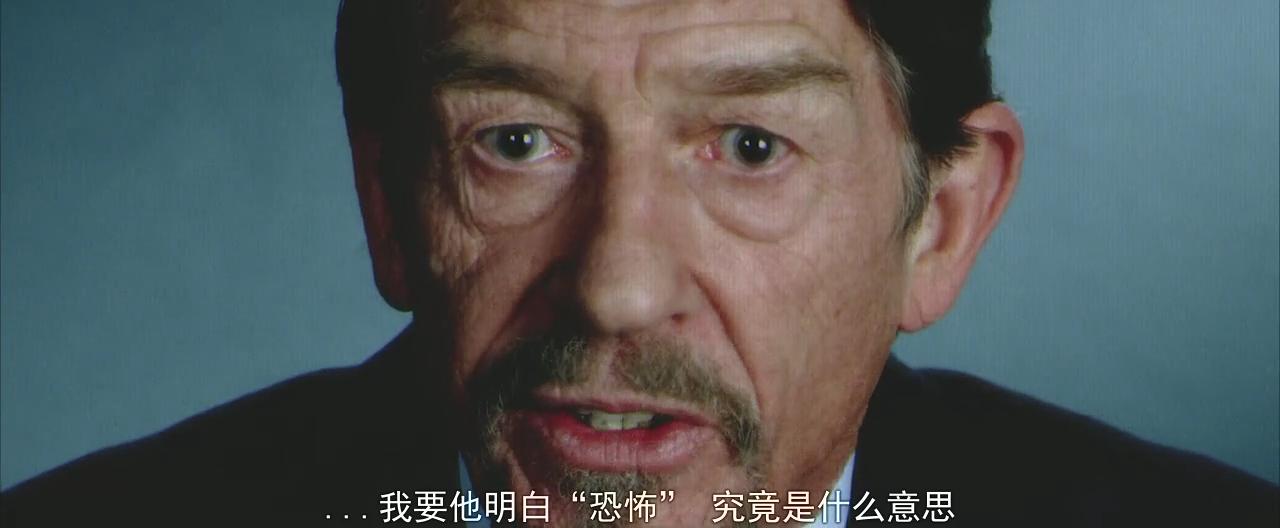 老 V在巷子里从JC的魔爪中救了伊芙,他在向她做自我介绍时,用刀子在墙上的大字报上划下了一个深深的“V”字,大字报上的内容是“力量来自团结,团结来自信仰”。这句话在洗脑类电视节目“伦敦之音”中也出现过。这句话中的信仰,是zf强加给人民的信仰,通过灌输一句口号,让人民变得情绪化地顺从