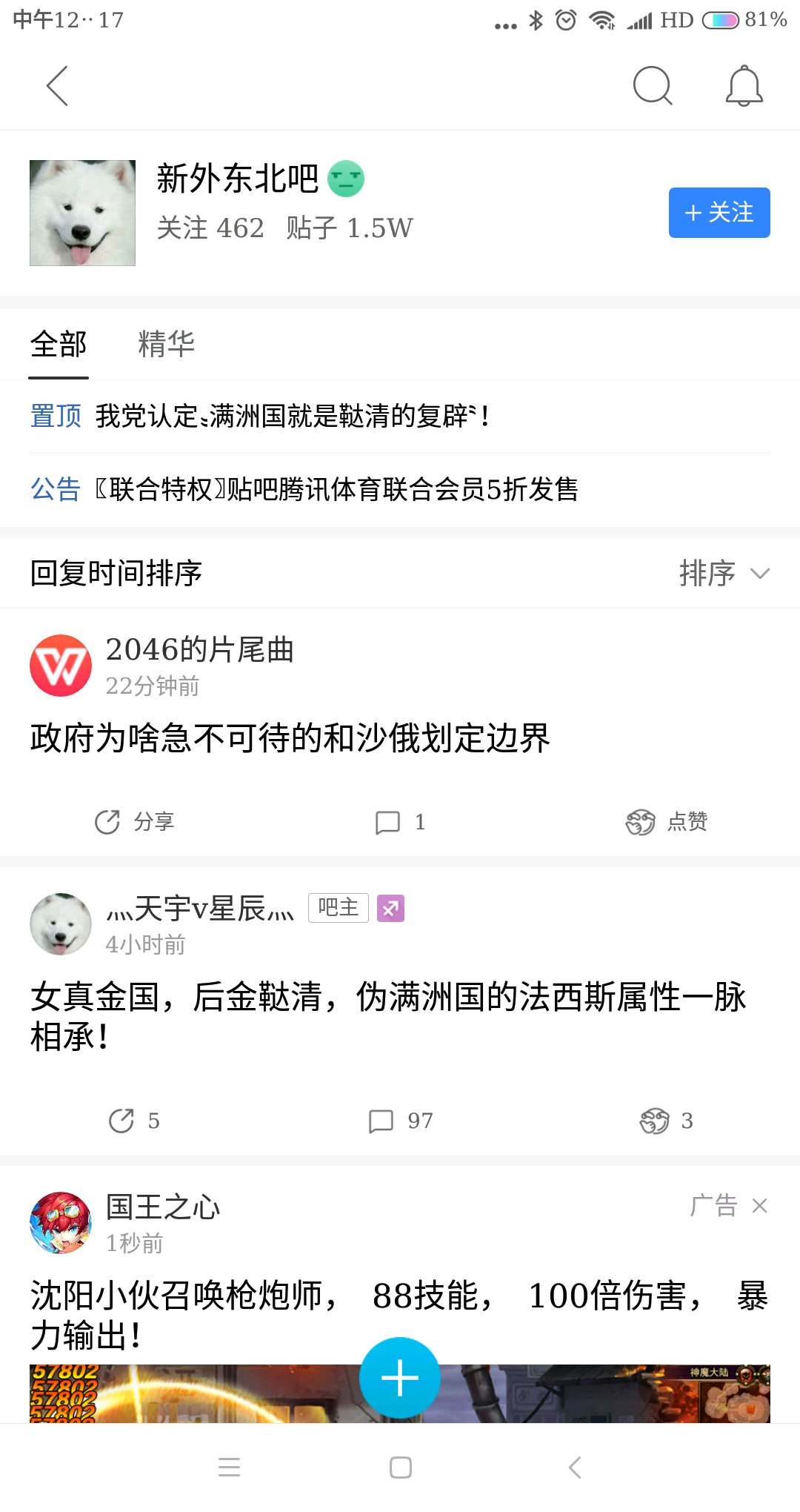 12楼1条pid:1229377863492018/11/21 07:09:19爱国的云7级 @首都网警 百度不管爱国的云 层主 7级 中国人的心理如此浑浊,难怪人家欺负!看他的头像就是一只狗,狗在中国可是骂人的话!他不是自己心甘情愿为俄人当狗,而鼓动大家都为俄人当狗吗?