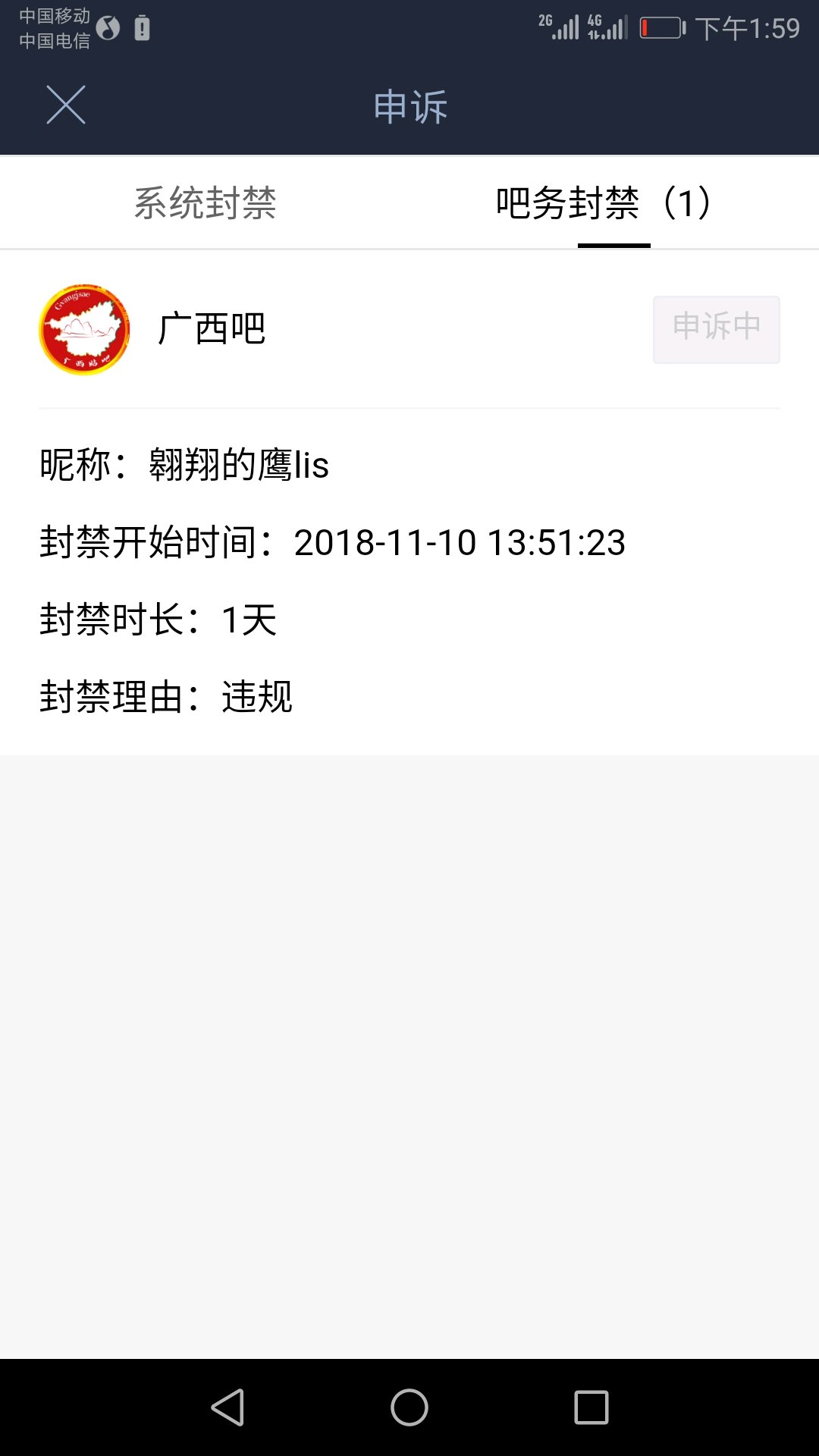 我要投诉广西吧的吧务,发个正常贴也封禁,昨天、今天都封禁我
