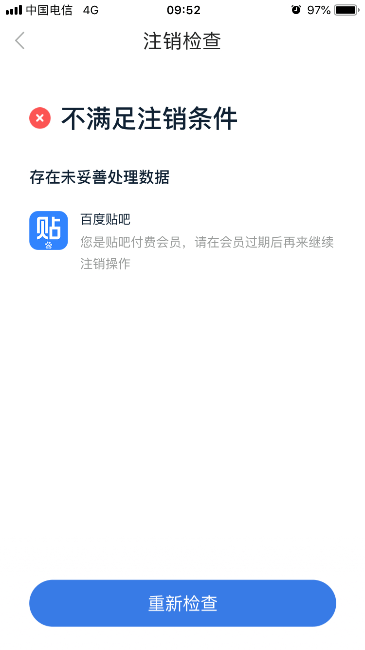 【申请注销百度账号】提示为贴吧会员无法注销,然而会员已过期