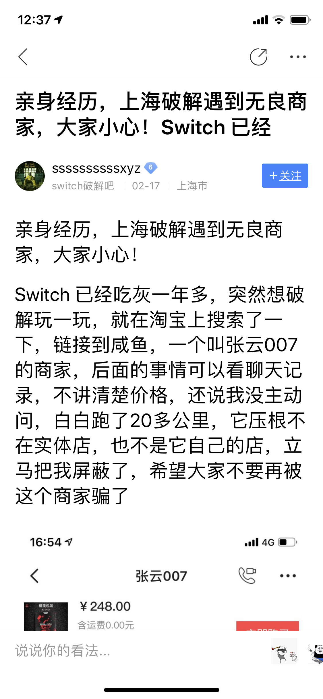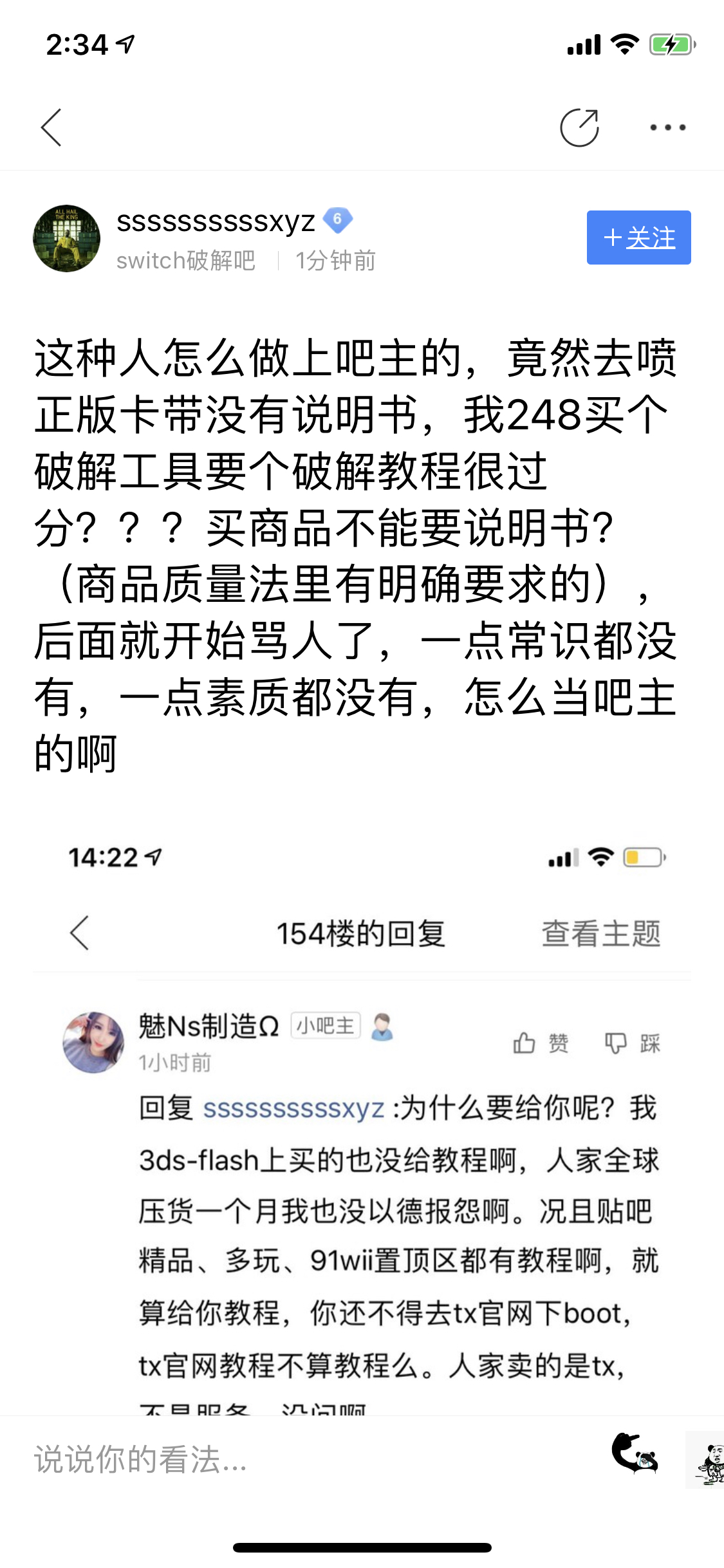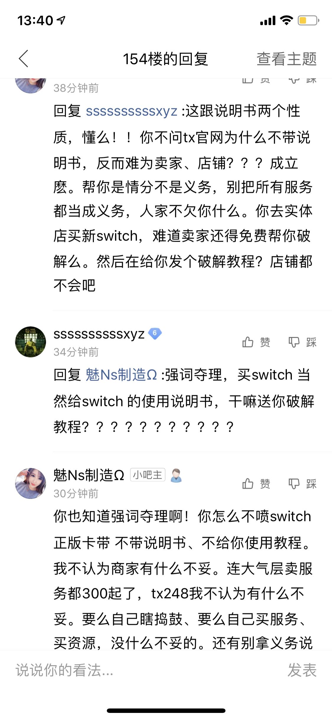 Switch破解吧的小吧主骂人,然后直接删我的帖子,禁我的言