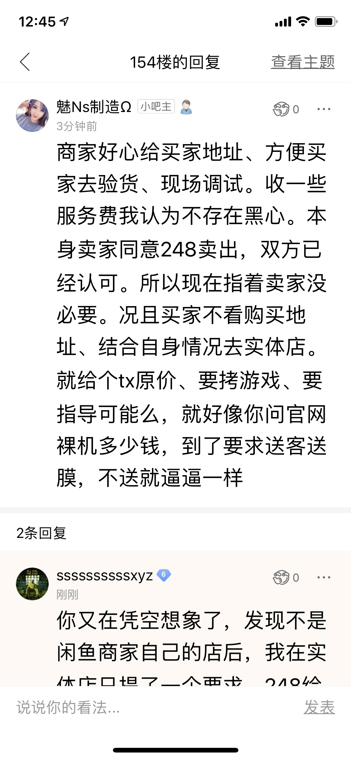 ssssssssssxyz回复:你去翻帖子,我骂的一共就两个人,一个是无良的商家(我已经道歉了),另一个是上面截图的人(他先骂人搞事的),除此之外,还有一群某人的舔狗,两三百回复,一半以上在骂我,我骂他们任何一个人了吗?