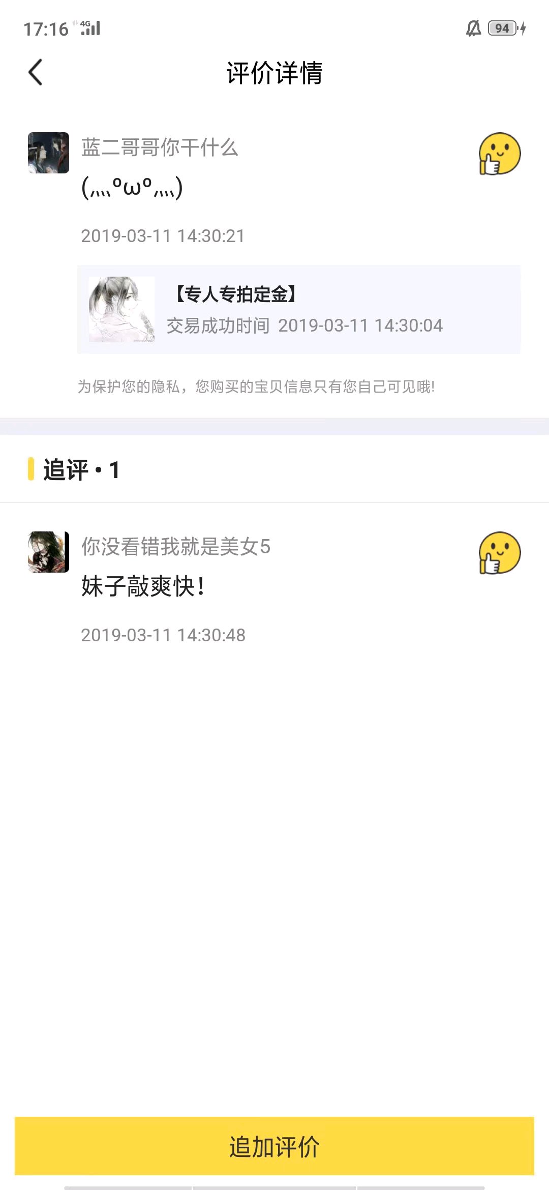发出来各位小姐姐小哥哥注意一下她,我原来是看她评论还不错,后来问了前辈才知道闲鱼评论能刷的,真的是,见识了这种人,我觉得我态度够好了,啊!不说了,希望各位小姐姐小哥哥看到了注意一下,小心被骗!
