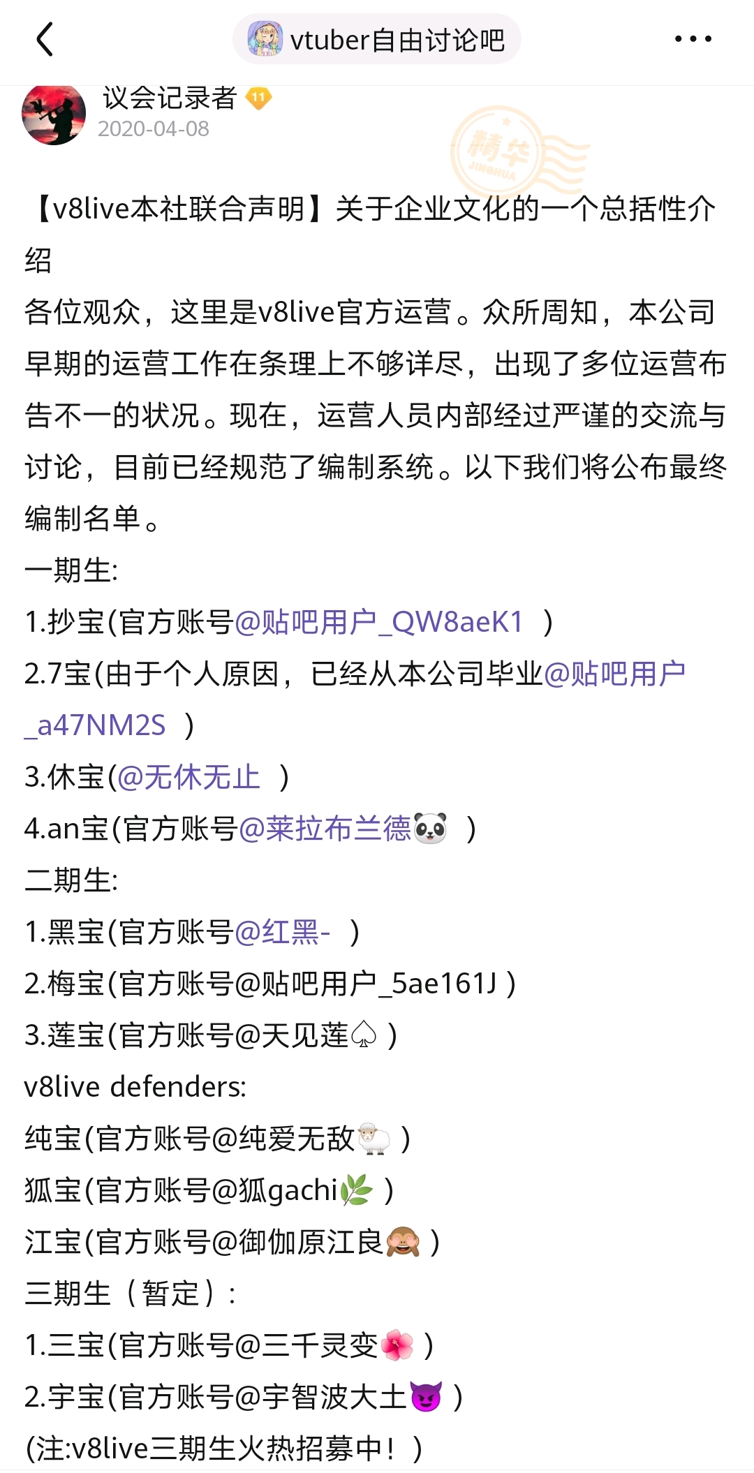 吧宝文化的另一个影响是v8live的成立,当时受木口的影响,大家已经为活跃的吧宝想了一个组合,叫做v8live,但此时的v8live还未正式成立,只是吧友们拿来整乐子罢了。