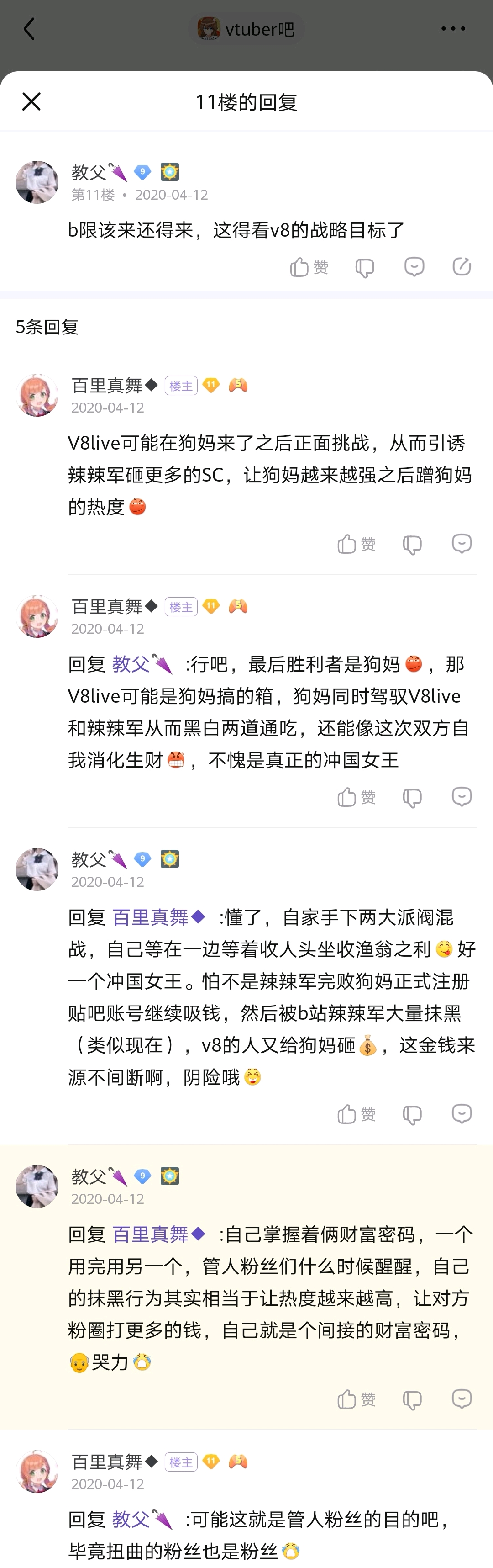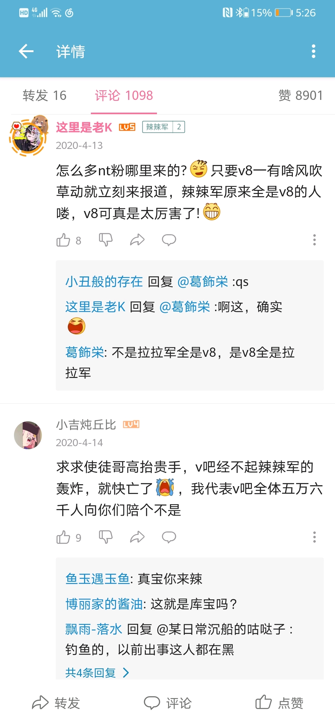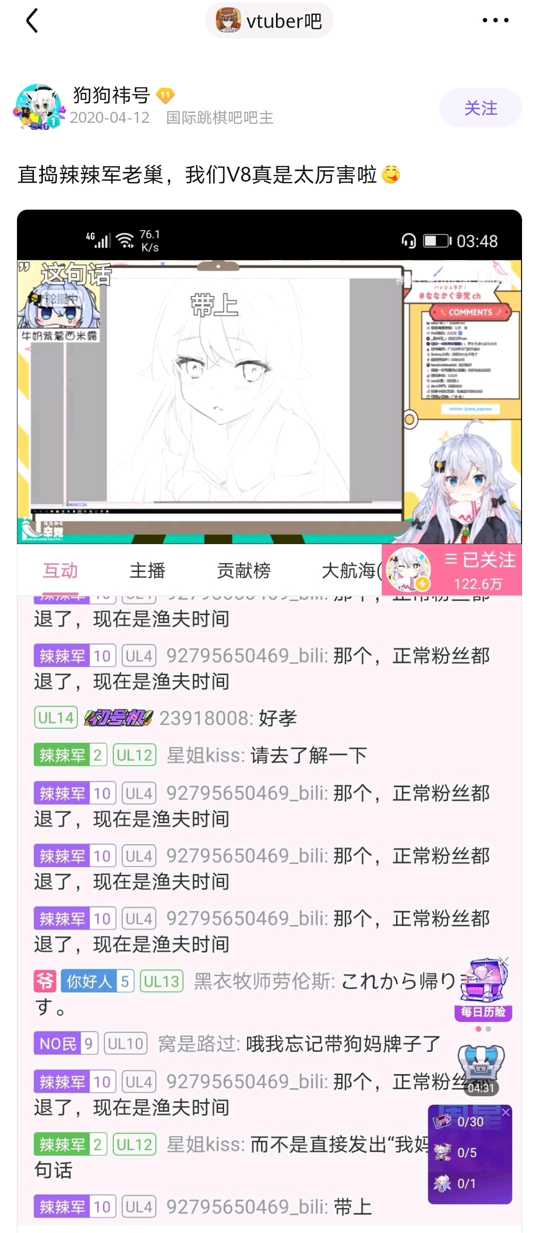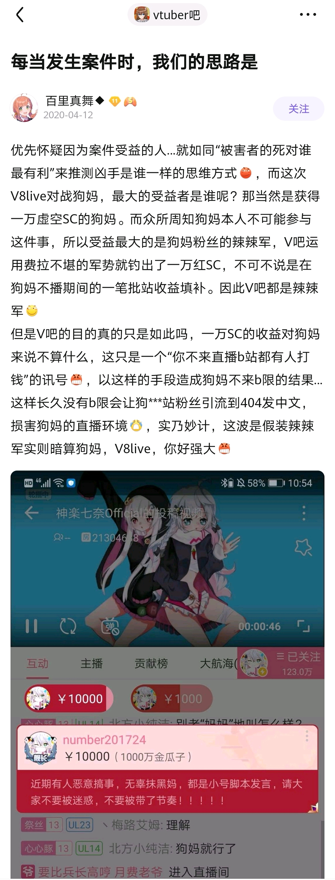 事情得回到去年4月12日那一天,吧友们被使徒哥逼到忍无可忍的地步,每个人都在想使徒哥究竟是哪路神仙,辣辣军被怀疑上了,缘由是休宝事件,星宝提议开团,于是第一次V8出征就开始了😅