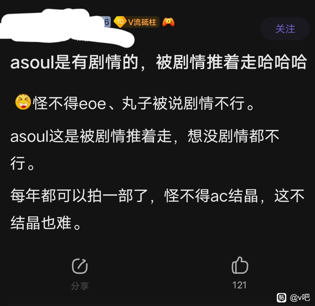 v吧 我完全明白了!tid:87557436402023/11/30 09:44:144548 4 0楼主兼最后回复:榭雨軒2023/11/30 13:48:591楼pid:1491581719162023/11/30 09:44:14榭雨軒 楼主 11级 我完全明白了 !A手就是一款mmorpg游戏,而星瞳就是游戏里的重要NPC(老本行)!该游戏每年会大更新一次主线剧情,而星瞳就是指定任务接取人,在每次游戏版本更新后需要玩家开红攻击NPC星瞳触发任务(星瞳好惨,指定木桩)来进行新一轮主线剧情 2楼1条pid:1491582437952023/11/30 09:54:31我道纵横8级 其实是本子剧情,asoul是au的妈妈,au是小流氓,每次au欺负星瞳,星瞳都会默默忍下,然后偷偷报复在asoul身上,让asoul步步沉沦。榭雨軒 楼主 11级 3楼pid:1491582801122023/11/30 09:59:441159536913海鸥丸泡面😘12级 4楼pid:1491595806072023/11/30 13:03:48分布式步枪分布式出列12级 eoe不是剧情不行,是剧情发展太快,属于是滚服玩法,大家不适应。as类似原神,一年更一个大版本,但是对玩家比较友好。5楼1条pid:1491596968602023/11/30 13:20:24伪灵主典主你在哪😿12级 其实是本子剧情,asoul是au的妈妈,au是学校里的小流氓,每次au欺负星瞳,星瞳都会默默忍下,然后星瞳偷偷找五百个大汉报复在asoul身上,让asoul步步沉沦。榭雨軒 楼主 11级