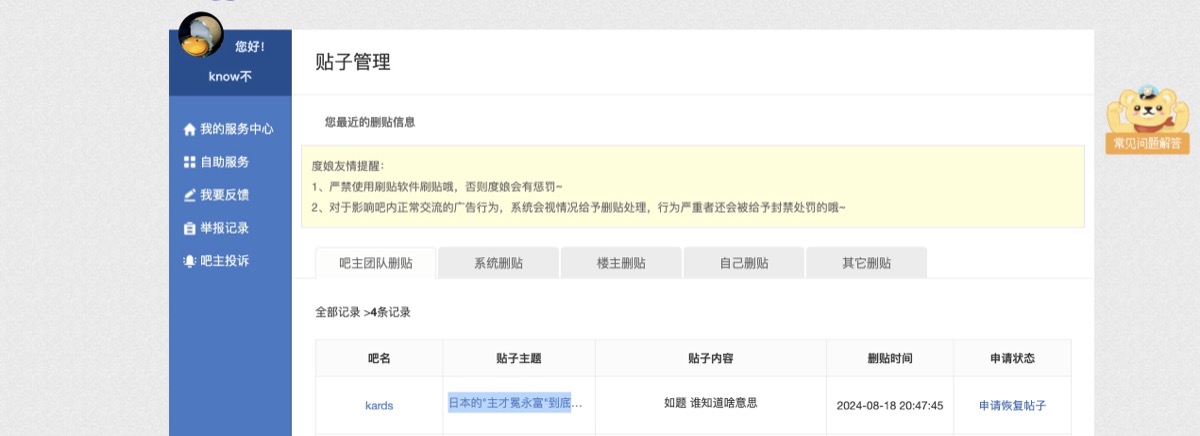起始页贴吧意见反馈吧 kards吧违规封禁和删除我4年前合规的贴文tid:91362016412024/08/18 21:45:5331390 2 0楼主:know不最后回复:贴吧用户_76GPyey2024/12/09 09:44:251楼pid:1507948020732024/08/18 21:45:53know不 楼主 1级 无故删4年前合规贴文 严重违规还每次封禁都是准时按点封禁该游戏在中国无版号违规发行 没有青少年实名认证登录 国外公司海外遥控建千人QQ群 严重国家安全顺隐患 如不允许此合规讨论发帖 将向相关网管部门举报该游戏以及百度长期包庇不作为行为 并且还有1个月炉石回归 也向网易举报 请积极处理谢谢2楼2条pid:1513523219492024/12/09 09:07:37BXXXR1级 卡兹到现在都没有实名?know不 楼主 1级 啥也没有BXXXR 层主 1级 回复 know不 :幽默1939