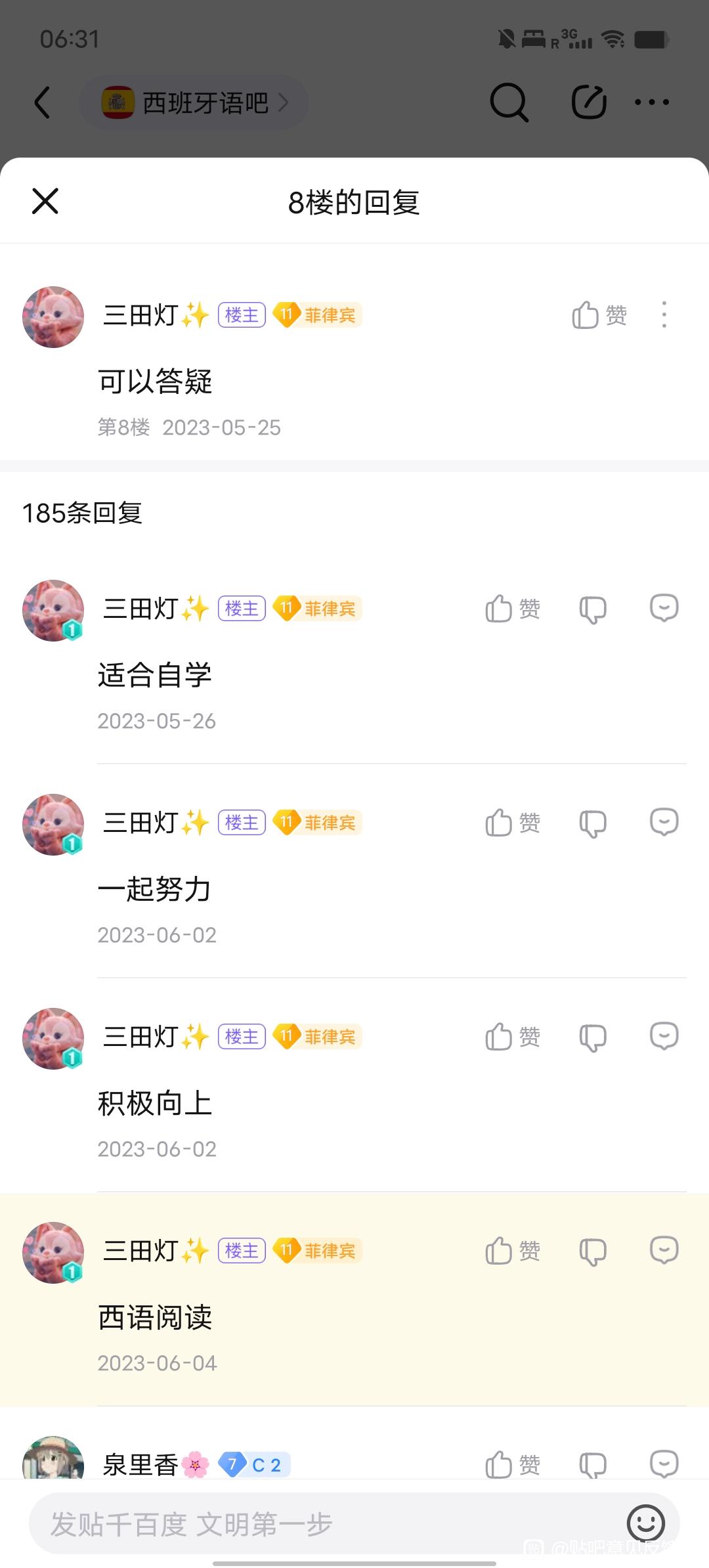 去年的帖子还飘在首页,点进去全是楼主自己刷屏顶帖,楼主小号卖课自己顶帖的无意义灌水回复,吧务组毫无任何有效管理,导致世界第三大语言的学习交流贴吧,竟然首页的帖子,最新回复是2天前,吧务组的严重违规卖课行为,严重影响西班牙语吧的使用体验。