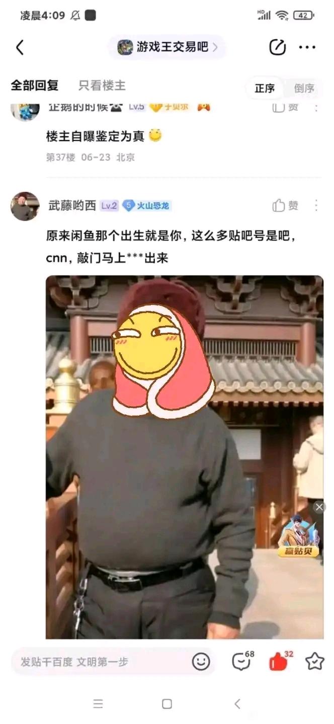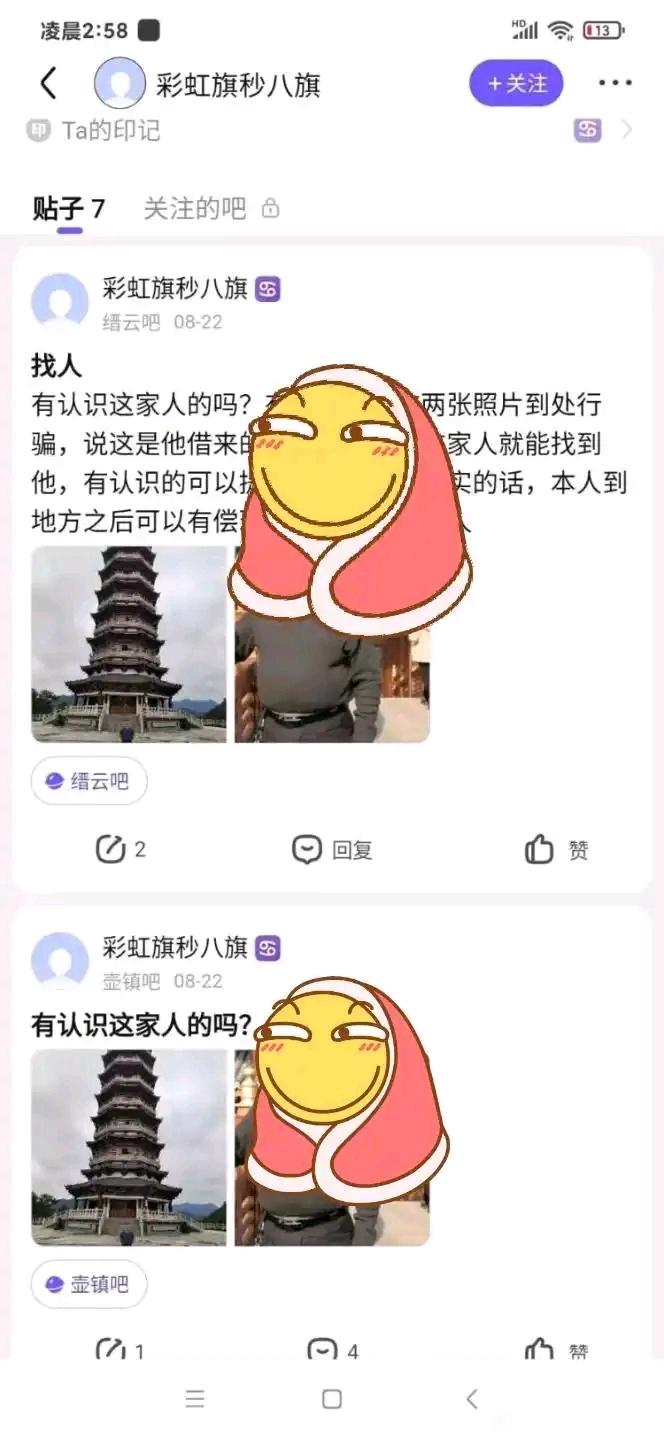 8楼pid:1520994480862025/05/15 20:24:31孤星未动疯川想资了 楼主 4级 这个骗子(id彩虹旗秒八旗)#id441320034# 整段复制后打开贴吧即可找到Ta在6月份的时候找我交易,因为一言不合就骂我。贴吧骂了一堆他还不过瘾,又在贴吧污蔑诽谤我,造谣污蔑我卖假卡,还多次扬言要找人查我,他自己闲鱼炸骗说我是骗子,通过 搞到了我的真实姓名和帖子里的两个家人照片。一些他辱骂的贴已经被系统删了,拉黑以后还不断开小号(id壶镇小霸王)id4168456189拿我有爷爷照片当头像用我身份骂人,严重影响我店铺名誉和个人生活。这个id头相人一户..)ID号308435579的也是他同伙