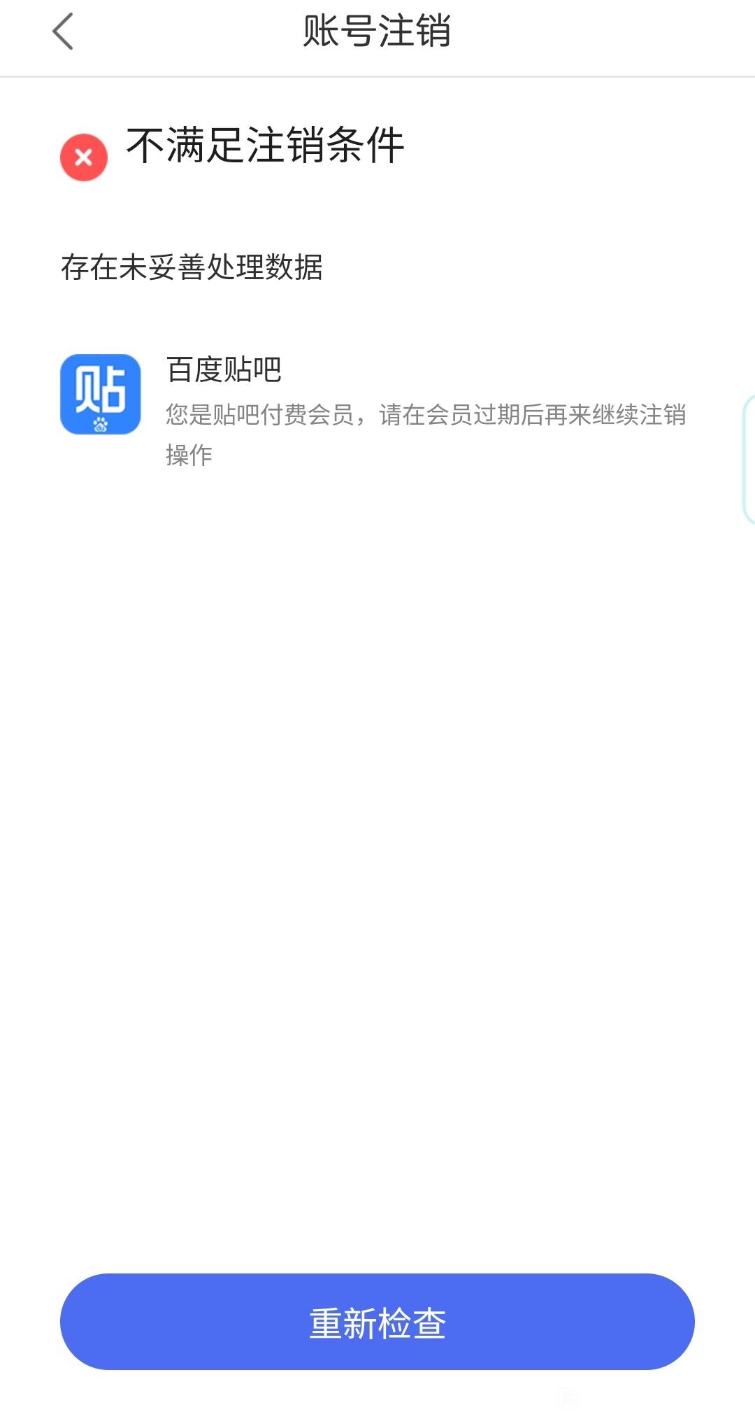 贴吧意见反馈吧 贴吧会员过期一个多月,注销账号还是提示tid:97564539932025/06/01 11:58:36404887 14 0楼主:贴吧用户_J1R2eK9991最后回复:吼吼~2025/12/19 11:30:001楼pid:1521771116812025/06/01 11:58:36贴吧用户_J1R2eK9991 楼主 5级 贴吧会员过期一个多月,注销账号还是提示有会员无法注销。联系客服,来来回回处理一个多星期了,总是在核实。第一次告诉我处理完毕,然后一试还是不行,后面再反馈,就告诉我在审核等结果,无奈╮(╯▽╰)╭2楼1条pid:1521773810882025/06/01 13:11:48行路者81815级 咋啦~贴吧用户_J1R2eK9991 楼主 5级 注销不了3楼pid:1521784798562025/06/01 18:08:39贴吧用户_J1R2eK9991 楼主 5级 帮忙解决一下吧感谢@贴吧Madam @贴吧阿Sir4楼pid:1521789746192025/06/01 20:22:17贴吧用户_J1R2eK9991 楼主 5级 5楼8条pid:1521793300792025/06/01 21:50:40战棋帝国棋天先亮🌈🔆14级 再等等吧,不行就注册一个新号贴吧用户_J1R2eK9991 楼主 5级 唉,只能等了战棋帝国 棋天先亮🌈🔆 层主 14级 回复 飞飞Kf :一个手机号可以绑定5个百度,所以你还有四个号可以用贴吧用户_J1R2eK9991 楼主 5级 回复 棋天先亮🌈🔆 :其实我想着不用了,就销了战棋帝国 棋天先亮🌈🔆 层主 14级 回复 飞飞Kf :可以送给恋爱对象贴吧用户_J1R2eK9991 楼主 5级 回复 棋天先亮🌈🔆 :hh泽了个沢1级 回复 棋天先亮🌈🔆 :咋弄呀?注册显示此手机号已被注册战棋帝国 棋天先亮🌈🔆 层主 14级 回复 泽了个沢 :已经注册,可以验证码登录回复 泽了个沢 :或者把老号卖掉6楼2条pid:1521796584722025/06/01 23:04:36成败间糖་♥་主་页་囙家5级 我也是贴吧用户_J1R2eK9991 楼主 5级 不啊,你这是有会员啊神秘复苏灵6级 回关,用程序举证,可以注销7楼1条pid:1521799858682025/06/02 00:18:41没甚么么度9想下车3级 我几个号都是 哎 一直不行贴吧用户_J1R2eK9991 楼主 5级 太多了8楼pid:1521813771982025/06/02 10:54:25贴吧用户_J1R2eK9991 楼主 5级 D9楼7条pid:1521835505992025/06/02 20:28:09情歌诗7级 用程序举证,可以注销囡囝囨囚囨図1级 能大概说一下吗情歌诗 层主 7级 回复 囡囝囨囚囨図 :回关,用程序举证,可以注销回复 囡囝囨囚囨図 :给我发消息,有方法注销神秘复苏灵6级 回复 囡囝囨囚囨図 :我会解,给我发消息情歌诗 层主 7级 回复 囡囝囨囚囨図 :关注我,才能发消息回复 囡囝囨囚囨図 :回关,我发不了消息回复 囡囝囨囚囨図 :关注我,才能发消息10楼pid:1521851001022025/06/03 05:18:29你可爱了鸭贴吧用户_JUAGZGU2级 哎,恶意收集用户信息啊11楼pid:1521854055072025/06/03 08:21:58贴吧用户_J1R2eK9991 楼主 5级 D12楼pid:1521862313942025/06/03 11:55:50贴吧用户_J1R2eK9991 楼主 5级 喜报,可以了,感谢贴吧解决问题@贴吧Madam @贴吧阿Sir13楼pid:1521863902942025/06/03 12:38:13神秘复苏灵6级 回关,用程序举证,可以注销14楼pid:1521878266472025/06/03 18:39:02B25040JG.酒馆2级 @贴吧Madam 处理一下15楼pid:1521938121062025/06/05 00:41:06没甚么么度9想下车3级 小心楼上骗子16楼pid:1521944887682025/06/05 07:33:13贴吧用户_005QKMy2601级 同样的问题,会员过期一个多月也不能注销@贴吧Madam @贴吧阿Sir17楼pid:1521976641172025/06/05 21:00:14FieeDM0011级 @贴吧Madam 会员过期但是提示是付费会员注销不了!18楼pid:1522681480742025/06/20 23:36:33贴吧用户_0PEGGU65071级 希望贴吧可以解决我的问题@我也是这个问题,一直无法注销@贴吧阿Sir @贴吧Madam19楼pid:1523226116872025/07/03 13:04:01行路者81815级 不管它~22楼1条pid:1524265000072025/07/27 00:54:58我嘞个豆腐鱼1级 同样的问题,会员过期,不能注销@贴吧Madam @贴吧阿Sir风过_无痕!!!6级 这个陈年老bug,是不打算修复了?一直都有人在这反馈这种问题那贴吧APP天天都更新了啥玩意??Kingbo124578 贴吧用户_Qt9R2Q11级 回复 為愛發電678 :更新他们全家的酸臭比25楼pid:1524657264492025/08/05 07:49:36gsjansbusn零点↗1级 一样的问题,我需要注销@贴吧阿Sir @贴吧Madam26楼pid:1524709803352025/08/06 12:43:16贴吧用户_JUKCQ3e3481级 我也是@贴吧阿Sir27楼pid:1524804722192025/08/08 17:39:23Kingbo124578贴吧用户_Qt9R2Q11级 会员过期但是提示无法注销,帮忙处理一下@贴吧Madam @贴吧阿Sir28楼1条pid:1525009969452025/08/13 18:11:29夹心酱酱4级 @贴吧阿Sir @贴吧Madam 同样问题,我这个账号要注销,处理一下百载文明1级 i.nmm29楼pid:1525549455042025/08/26 23:17:57贴吧用户_J9QE2Wy4402级 同样的问题会员过期,不能注销@贴吧Madam @贴吧阿Sir30楼pid:1525549473042025/08/26 23:18:26贴吧用户_J9QE2Wy4402级 会员过期不能注销@贴吧Madam @贴吧阿Sir31楼pid:1525549545192025/08/26 23:20:19贴吧用户_J9QE2Wy4402级 同样的问题,会员过期,不能注销@贴吧阿Sir @贴吧Madam32楼pid:1525706187532025/08/30 21:31:177enc1级 @贴吧阿Sir 我也注销不了现实未过期33楼pid:1525706260612025/08/30 21:33:227enc1级 @贴吧阿Sir 我的账号也是我提交客服两次了从来没有回信都得快一个月了 现实没有过期但早过期了34楼pid:1526700363092025/09/26 10:52:58贴吧用户_5AJ1CG85374级 @贴吧阿Sir 同样问题,无法注销,请帮忙解决一下35楼pid:1526700480292025/09/26 10:56:12贴吧用户_5AJ1CG85374级 我也不能注销@贴吧Madam @贴吧阿Sir 36楼pid:1527398724642025/10/15 10:22:29dtj565656sna_n1zbe2级 同样的问题,会员过期,不能注销@贴吧阿Sir @贴吧Madam37楼pid:1529961375312025/12/19 11:30:00吼吼~吼吼~1级 @贴吧阿Sir 同样问题,无法注销,请帮忙解决一下