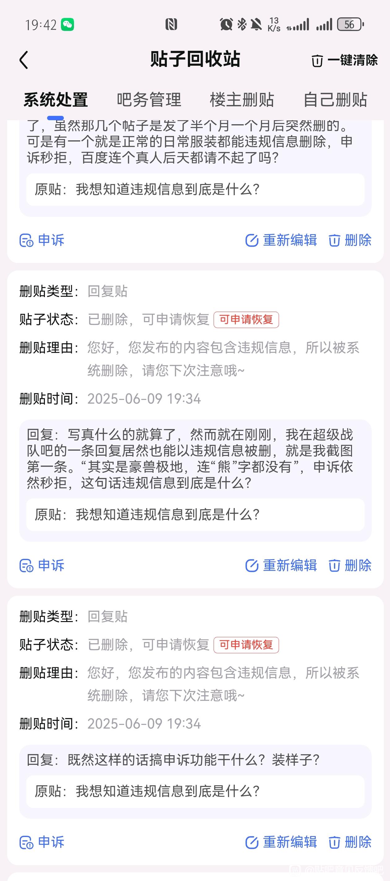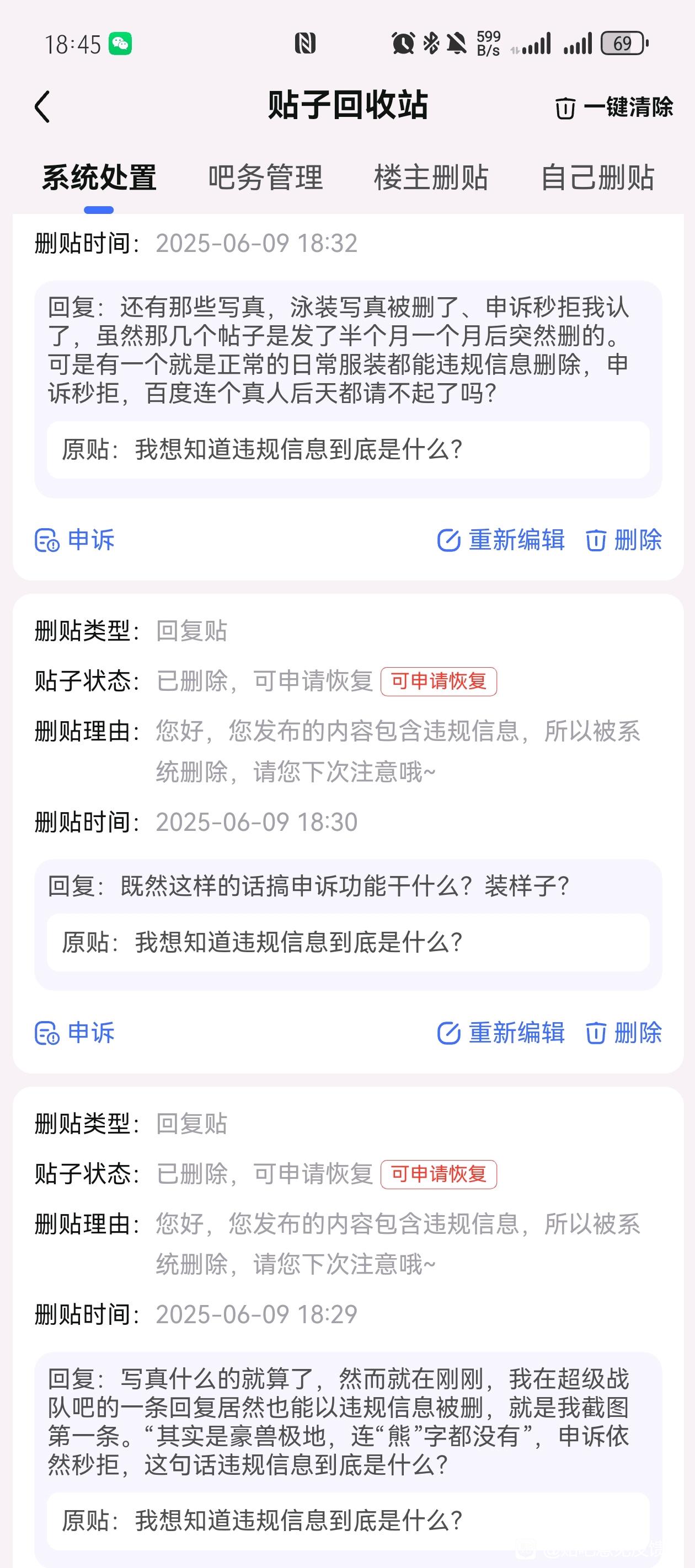 写真什么的就算了,然而就在刚刚,我在超级战队吧的一条回复居然也能以违规信息被删,就是我截图第一条。“其实是豪兽极地,连“熊”字都没有”,申诉依然秒拒,这句话违规信息到底是什么?