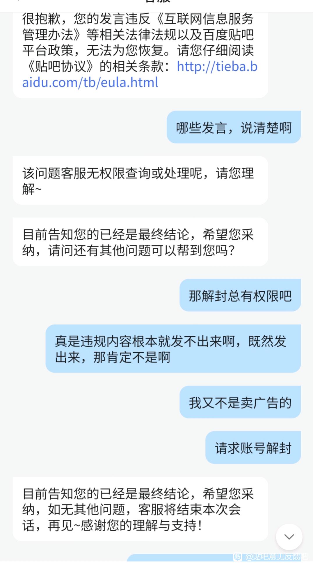 2楼pid:1522206072982025/06/10 17:56:32贴吧用户_5JR2293 楼主 3级 还有客服,这算什么态度啊?我都没有发广告,一堆人发飞机杯广告不封,我哪些发言违规了又不说,真的违规内容根本发不出来@贴吧Madam @贴吧阿Sir