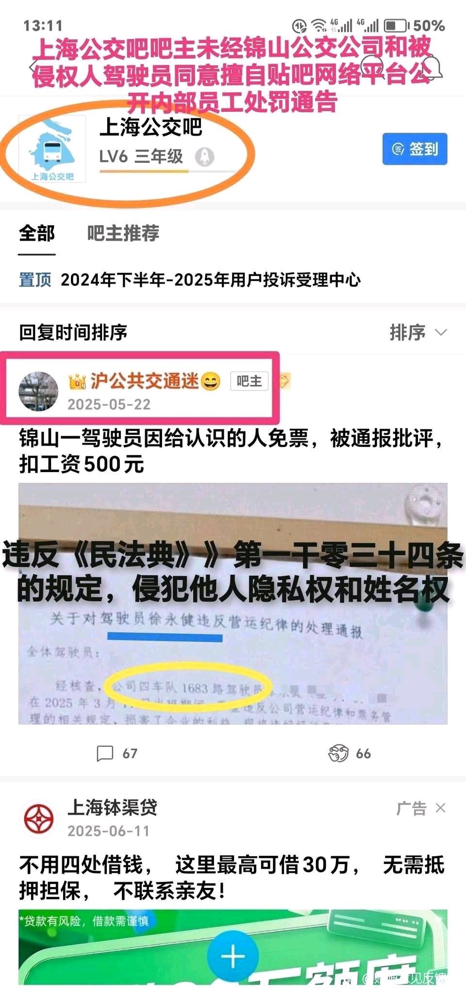 对于上海公交吧吧主违规行为问题不解决就一直投诉
